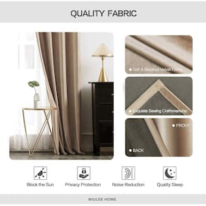 MIULEE As cortinas de veludo são sedosas, macias, drapeadas e são muito boas ao toque. Eles podem ser facilmente integrados em qualquer configuração de estilo para tornar seu quarto mais refinado e elegante. - Bem feita: Vendido como 2 painéis, cada um medindo 132 cm L x 277 cm C (da borda superior da haste instalada até a parte inferior). Cortinas com aro superior são fáceis de deslizar. - Detalhes finos: cada cortina tem 8 furos e o diâmetro interno dos orifícios do ilhós é de 4 cm. E cada borda da cortina é bem costurada. - Aparência luxuosa: as cortinas de veludo MIULEE são suaves e sedosas, macias, drapeadas e são muito boas ao toque. Elas podem ser facilmente integradas em qualquer configuração de estilo para deixar seu quarto mais refinado e elegante. - Função: as cortinas blackout podem bloquear de 60 a 70% da luz (a cor mais escura funciona melhor) e também podem reduzir o ruído e manter o calor baixo no verão ou manter o frio fora no inverno para economizar energia inteligente e proporcionar privacidade. - Lembre-se: devido ao processo de produção, as cortinas podem parecer prateadas de pelúcia refletivas sob diferentes intensidades e ângulos de luz, e a cor também pode ser diferente em diferentes luzes ou em diferentes telas. Considere uma diferença de 1 a 2 cm devido ao corte e costura à mão. Se estiver enrugada, use um ferro a vapor de baixa temperatura para passar a parte traseira e a frente da cortina. Lavável na máquina em água fria e secável na secadora.