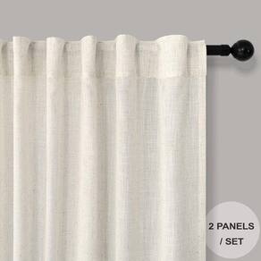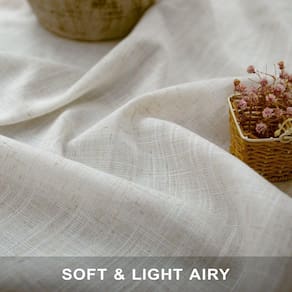 Tecido de mistura de linho macio: o rico tecido de linho misturado com poliéster apresenta um tom de linho neutro. O efeito primitivo e l torna os painéis mais drapeados e estéticos. Sensação de toque suave premium nessas cortinas elegantes de mistura de linho, adicione um charme refrescante à sua janela