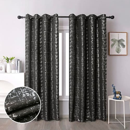 Cortinas Taisier Home Silver Foil Print Linen Geometric 2 painéis