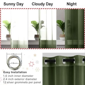 Com tecido de alta qualidade, nossas cortinas transparentes de voile são macias e duráveis o suficiente. 8 ilhós prateados por painel facilitam a instalação e o ajuste em qualquer haste padrão. Estas cortinas de janela com filtro de luz podem difundir a luz solar intensa e permitir a entrada de luz suave, criando um ambiente respirável e aconchegante. Usando nossas cortinas transparentes para adicionar elegância ao seu quarto enquanto maximiza efetivamente a privacidade. Nossas cortinas transparentes leves são perfeitas para sala de estar, quarto, berçário, quarto de meninas, decoração de casa e qualquer outra ocasião. O tecido de poliéster premium é lavável na máquina, secar na máquina e passar a ferro a baixa temperatura (se necessário). DESEMPENHO FANTÁSTICO Tecido 100% poliéster de alta densidade. Filtragem leve e respirável Maximize a privacidade Fácil instalação e limpeza fácil Lavável e resistente ao desbotamento da cor Disponível em e tamanhos. Adequado para sala de estar, quarto, cozinha, quarto de criança, escritório, berçário e muito mais Fácil de cuidar. Lavável na máquina. Secar em temperatura baixa. Passar a ferro a baixa temperatura. Nobleaching Sem amaciante DICAS Entre em nossa loja Hiasan para encontrar mais tipos de cortinas. Confirme a cor e o tamanho de sua escolha antes de comprar. - Material premium: as cortinas transparentes Hiasan macias e duráveis são feitas de tecido 100% poliéster. Cada painel tem 12 ilhós prateados (4 cm de diâmetro) para deslizar e pendurar facilmente. Cada pacote inclui 2 painéis de voile bem feitos medindo 178 cm de largura por 213 cm de comprimento. Disponível em e tamanhos - Decoração elegante: Estas cortinas transparentes de voile arejadas são práticas e decorativas. Estas cortinas transparentes de toque suave são leves e sopram ao vento com uma forma graciosa. Usando nossas cortinas transparentes e transparentes adicionando um charme refrescante à decoração da sua casa - Características especiais: cortinas de voile de design exclusivo com laços costurados em ambos os lados ajudam você a amarrar as cortinas facilmente. Estas cortinas transparentes respiráveis podem filtrar a luz solar e equilibrar o nível de luz entre interior e exterior. Fornece luz suficiente para o seu quarto enquanto difunde a luz solar direta. Permite que você aproveite a bela paisagem fora da janela enquanto fornece a você uma certa proteção de privacidade - Vários usos: nossas cortinas transparentes práticas são ideias para sala de estar, quarto, quarto infantil, berçário, escritório, porão, porta de pátio, porta de vidro deslizante, sala de jantar e quaisquer outras ocasiões. Nossas cortinas texturizadas de voile complementam a maioria das decorações e podem combinar com cortinas blackout de cor sólida da Hiasan Store - Instruções de cuidado fácil: lavável na máquina e ciclo suave. Ajuda você a reduzir o tempo de trabalho doméstico pesado e chato. Não usar alvejante, secar em temperatura baixa e passar a ferro a baixa temperatura, se necessário