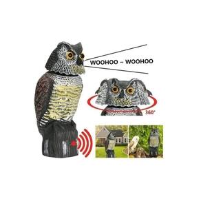 DescriçãoBúho con veleta que hace que la cabeza se mueva sola y con sensor de movimiento, que al detectar movimiento emite som característico de un búho usa 3 pilas AAMedidas 38 cm de altura x 16 cm de largura. Hecho de plástico moldeado resistente y parece muy realista, ahuyenta a los pájaros de manera efictiva.NOTA: Mude a posição do búho em todo momento para evitar que as aves se acostumem.Simplemente coloque o búho em um lugar visível, como uma árvore ou um arbusto. Coloque a pestana na cabeça, para o efeito de veleta.Los búhos son el depredador l de las aves y de los seres s destructivos. Defensor perfecto para el jardín, patio, porche y más.Respetuoso con el medio ambiente y con la vida silvestre, deshazte de las aves y los seres s destructivos de forma humana sin dañarlos.