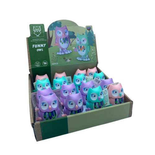 Com um simples giro na corda, a Corujita Corda ganha vida e movimenta-se de forma divertida. Seu tamanho compacto e visual encantador conquistam as crianças, tornando-se uma excelente opção para lembrancinhas, brincadeiras e coleções temáticas.