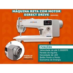 Aumento de produtividade em 15%: A função de parada de agulha superior e inferior proporciona o aumento da produtividade por dispensar o manuseio do volante. Motor Eletrônico Direct-Drive ligado diretamente ao eixo principal que proporciona maior agilidade na partida da máquina por não utilizar correia, além de proporcionar uma economia de 60 a 70% de energia em relação ao motor convencional.
