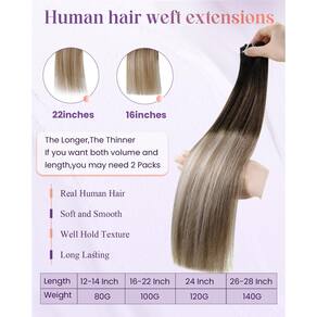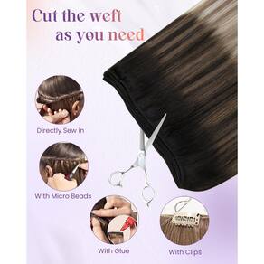 Extensões de cabelo de costura LaaVoo aprimoradas, cabelo humano real! Por que você precisa de extensões de cabelo humano de trama? ?A trama do cabelo humano é segura e versátil para lidar com baixa densidade ou para fazer uma peruca completa ou para adicionar comprimento/volume. ?Estas extensões de trama de cabelo ombre/balayage são as mais razoáveis para obter uma combinação de cor perfeita sem danificar seu próprio cabelo. ?Se você é um usuário de extensão ou cosmetologista, você deve ter passado por cabelos caros ou fora da marca. E a marca "LaaVoo" traz a você extensões de trama de cabelo de qualidade e acessíveis. ?As extensões de trama de cabelo costuradas não contêm nenhuma peça de fixação, você pode costurar, colocar micro ligação, prender ou colar como quiser. ?Normalmente, 2-3 conjuntos são suficientes para uma cabeça inteira. Especificações: Material do cabelo: Cabelo humano real Textura do cabelo: Liso natural Cor do cabelo: Mais de 10 cores disponíveis Comprimento do cabelo: 30-61 cm Peso do cabelo: (30,5 cm/35,5 cm): 80 gramas/feixe; (40,6 cm/45,7 cm/50,8 cm/55,9 cm/61 cm): 100 gramas/pacote Vida útil do cabelo: Depende muito de como eles foram utilizados e cuidados Como lavar e costurar extensões de cabelo de trama? Penteie as extensões de cabelo antes de lavar. Lave as extensões de cabelo em água morna suavemente, use um pouco de xampu suave e condicionador sem sulfato. Segure suavemente as extensões de cabelo e esprema a água, depois seque as extensões de cabelo com uma toalha e deixe secar naturalmente. - Motivo para escolher um cabelo de trama: o cabelo de trama LaaVoo é feito de cabelo humano remy e usa tecnologia avançada de tingimento para criar uma textura macia e suave, assim como o seu próprio cabelo. Pode ser amarrado ao seu cabelo firmemente - Como evitar queda ou emaranhamento: antes de lavar, escove o cabelo com um pente de dentes largos suavemente, use xampu suave e condicionador sem sulfato e óleo e máscara capilar pelo menos uma ou duas vezes por semana - Várias formas de uso e larguras: o cabelo de trama LaaVoo pode ser costurado diretamente, com clipe ou micromiçangas. Mas a cola não é recomendada porque pode ser prejudicial ao seu cabelo. Pode ser cortado em qualquer largura que você quiser para atender às suas necessidades especiais de bricolage - Especificação especial do produto: as extensões de cabelo de trama LaaVoo têm 80 g para 30.5-35.6 cm, 100 g para 40.6-56 cm e 120 g para 61.0 cm. Além disso, existem opções de 140 g de 66 cm e 71 cm para a cor 1. Tramas duplas fornecem robustez e durabilidade - Atende às suas necessidades especiais: o cabelo de trama LaaVoo tem bonitas que podem ser enroladas abaixo de 180 °C. Diferenças de cor podem ocorrer ocasionalmente devido a fatores de luz. Se ainda estiver confuso sobre a cor, consulte a equipe de atendimento ao cliente