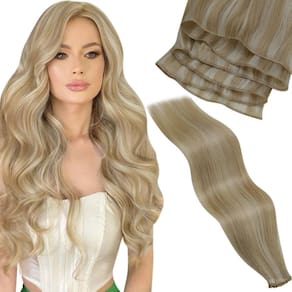 Extensões de cabelo de costura LaaVoo aprimoradas, cabelo humano real! Por que você precisa de extensões de cabelo humano de trama? ?A trama do cabelo humano é segura e versátil para lidar com baixa densidade ou para fazer uma peruca completa ou para adicionar comprimento/volume. ?Estas extensões de trama de cabelo ombre/balayage são as mais razoáveis para obter uma combinação de cor perfeita sem danificar seu próprio cabelo. ?Se você é um usuário de extensão ou cosmetologista, você deve ter passado por cabelos caros ou fora da marca. E a marca "LaaVoo" traz a você extensões de trama de cabelo de qualidade e acessíveis. ?As extensões de trama de cabelo costuradas não contêm nenhuma peça de fixação, você pode costurar, colocar micro ligação, prender ou colar como quiser. ?Normalmente, 2-3 conjuntos são suficientes para uma cabeça inteira. Especificações: Material do cabelo: Cabelo humano real Textura do cabelo: Liso natural Cor do cabelo: Mais de 10 cores disponíveis Comprimento do cabelo: 30-61 cm Peso do cabelo: (40,6 cm/45,7 cm): 50 gramas/feixe; (50,8 cm): 60 gramas/feixe; (/56 cm/61 cm): 80 gramas/pacote Vida útil do cabelo: Depende muito de como eles foram utilizados e cuidados Como lavar e costurar extensões de cabelo de trama? Penteie as extensões de cabelo antes de lavar. Lave as extensões de cabelo em água morna suavemente, use um pouco de xampu suave e condicionador sem sulfato. Segure suavemente as extensões de cabelo e esprema a água, depois seque as extensões de cabelo com uma toalha e deixe secar naturalmente. - Se você está procurando extensões de cabelo avançadas: as extensões de cabelo LaaVoo Genius Weft são feitas usando técnicas e tecnologias avançadas de poliuretano exclusivas que são macias ao toque sem fios de costura. Eles são amarrados à mão em uma trama fina - Qualidade melhorada - cabelo virgem: a matéria-prima é proveniente de cabelo virgem. As cutículas dos fios de cabelo estão intactas e alinhadas na mesma direção. Isso garante o mínimo de emaranhamento, queda e uma aparência natural - Pode ser cortado em qualquer ponto para facilitar a personalização: as extensões de cabelo de trama genial combinam as melhores partes de trama amarrada à mão e trama plana. Por serem mais finas do que as extensões de cabelo de trama normais, elas podem ser cortadas na largura para uma instalação mais personalizável - Longevidade: devido à sua construção e qualidade, as extensões de cabelo geniais de trama são frequentemente consideradas mais duradouras em comparação com as extensões de cabelo normais de trama de máquina. Elas podem ser ajustadas e reutilizadas, economizando custos a longo prazo - Especificação especial do produto: as extensões de cabelo humano de trama LaaVoo genius têm 50 g para 40,6 a 45,7 cm, 60 g para 50,8 cm e 80 g para 56-61 cm. Você pode fixar ao cabelo natural usando vários métodos, como costura, clipes ou cola