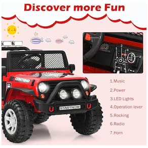 Dois modos de controle 1. Pedais e volante são uma maneira de as crianças dirigirem o carro. 2. O uso do controle remoto parental bateria AAA de 1,5 V não incluída é o contrário. E o último substitui o primeiro. Além disso, há uma alça embaixo do carro para facilitar a movimentação, caso você esqueça de carregar o suficiente na noite passada. Um passeio e suave este caminhão de passeio de 12V possui suspensão de mola dianteira e traseira e uma função de partida lenta para garantir um tempo de reprodução em quase todos os terrenos. Sempre coloque seus filhos no cinto de segurança quando eles entrarem no carro e o amplo assento garante que o passeio seja confortável e alegre. Experiência de condução realista com portas que podem ser abertas, janela frontal de grade ou volante, todos os detalhes requintados são imitados do caminhão real. O carro anda para frente e para trás, e também tem um modo de balanço. Nosso brinquedo de carro ruge quando você liga, as buzinas podem apitar e, com as luzes LED piscando, seu pequeno piloto recebe um passeio o mais realista possível. Opções de música e áudio Com música, este carro de passeio consegue trazer mais alegria para as crianças. Sistema de controle integrado ao equipamento para aumentar muito mais prazer. MP3, saída USB, funções que significam conectar outros dispositivos de música ou conectar telefones para obter mais opções de áudio para a preferência de seus filhos. Um presente de perfeição nosso carro de passeio vem com várias opções de cores e será um grande incentivo para seus filhos com mais de 3 anos. A tampa de PP sólida torna o carro de passeio um prazer duradouro com um peso máximo de 49 kg. Requer 8 12h de carregamento para 1 hora de diversão Marca: Não Informado
