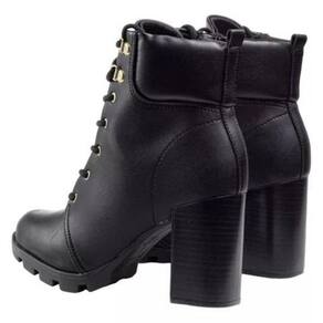 Coturno Beira Rio Salto Alto Solado Tratorado Feminino Preto. Confeccionado em material sintético (napa) por completo, de ótima qualidade e durabilidade, detalhe no cano em tecido strech canelado e solado tratorado. O modelo possui forração em tecido, para assim manter seus pés quentinhos no inverno, palmilha em PU com espuma dupla para melhor conforto. Possui fechamento em cadarço, para melhor calce e ajuste aos pés. Cano médio com detalhe em tecido, de fácil combinação com looks. Solado em PVC tratorado antiderrapante, dando um charme a mais para a peça. Bico redondo. Salto quadrado em 9,0 cm de altura, somente para conforto. Garanta já!