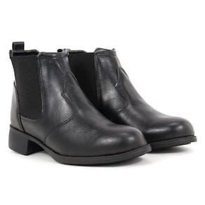Coturno Bota Feminino Couro Preto Chelsea com Elástico - 34 - Preto