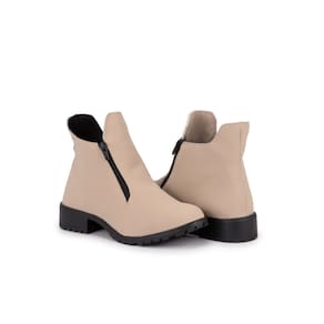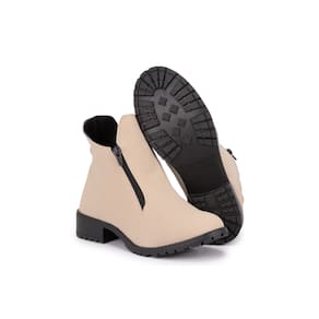 Coturno Feminino Bota Salto Montaria Nude Com Ziper Flatform - 35 - Branco