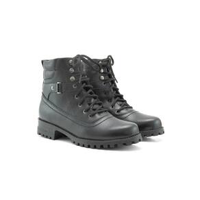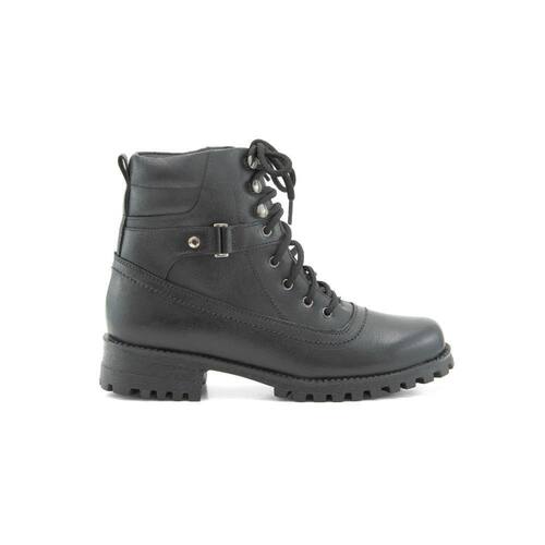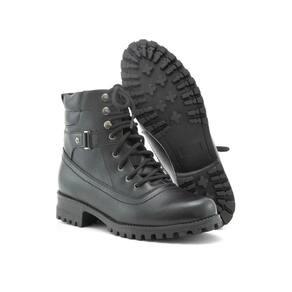Coturno Feminino Bota Tratorada Couro Cano Curto Cadarço - 37 - Preto