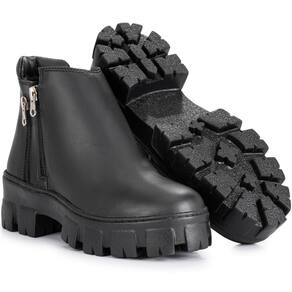 Coturno Feminino Bota Tratorada Salto Baixo Confortável Preto - 40 - Preto