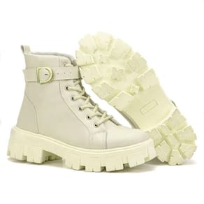 Coturno Feminino Casual com Amarração e Detalhe de Fivela Conforto e Estilo Urbano Marfim - 40 - Bege