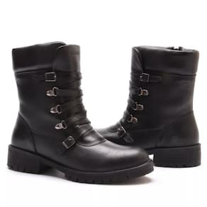 Coturno Feminino Couro Tratorado Cano Médio Fivela - 39 - Preto