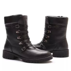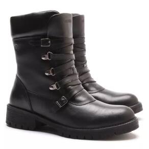 Coturno Feminino Couro Tratorado Cano Médio Fivela - 37 - Preto