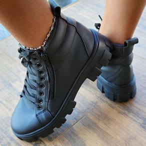 Bota Feminina com Solado tratorado Plataforma Descubra o Charme do Conforto para seus treinos ou passeio com nosso coturno feminino Características Principais: Cabedal: Sintético Forro: Tecido Antibacteriano Palmilha: Confort Eva 4mm Sola: Borracha Antiderrapante Altura Da Sola: 5 Centrimetros Metais: Antioxidante Ajuste: Cadarço Fios De Algodão E Zíper Reforçado Peso: 0.600g Atenção na hora de escolher seu tamanho, o Tênis possui FORMA NORMAL, pedir o número que já está acostumado a usar, temos aqui a abaixo uma tabela aproximada de cm da palmilha para usarem como referência. TAMANHO DE PALMILHA 33 - 22.9 cm 34 - 23.2 cm 35 - 24.0 cm 36 - 24.5 cm 37 - 25.0 cm 38 - 26.0 cm 39 - 27.0 cm 40 - 27.5 cm Não perca a chance de adicionar um toque de elegância e conforto ao seu guarda-roupa. Clique em "Comprar Agora" e experimente a combinação perfeita de estilo e comodidade com nossos Coturnos Femininos. Seu próximo par de sapatos favorito está a apenas um clique de distância!