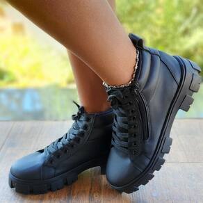 Bota Feminina com Solado tratorado Plataforma Descubra o Charme do Conforto para seus treinos ou passeio com nosso coturno feminino Características Principais: Cabedal: Sintético Forro: Tecido Antibacteriano Palmilha: Confort Eva 4mm Sola: Borracha Antiderrapante Altura Da Sola: 5 Centrimetros Metais: Antioxidante Ajuste: Cadarço Fios De Algodão E Zíper Reforçado Peso: 0.600g Atenção na hora de escolher seu tamanho, o Tênis possui FORMA NORMAL, pedir o número que já está acostumado a usar, temos aqui a abaixo uma tabela aproximada de cm da palmilha para usarem como referência. TAMANHO DE PALMILHA 33 - 22.9 cm 34 - 23.2 cm 35 - 24.0 cm 36 - 24.5 cm 37 - 25.0 cm 38 - 26.0 cm 39 - 27.0 cm 40 - 27.5 cm Não perca a chance de adicionar um toque de elegância e conforto ao seu guarda-roupa. Clique em "Comprar Agora" e experimente a combinação perfeita de estilo e comodidade com nossos Coturnos Femininos. Seu próximo par de sapatos favorito está a apenas um clique de distância!