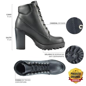 O Coturno Moleca Napa Salto Alto Solado Tratorado Feminino Preto foi desenvolvido especialmente para dar aquela diferenciada nos seus looks. Além disso, ele proporciona conforto e praticidade ao realizar combinações para os looks de inverno ou estações mais frias. Ele exala personalidade. Não é o máximo? Confeccionado em material sintético de alta qualidade, possui cano curto, fechamento por cadarço, bico redondo, detalhe de costura pespontada e aplique com nome da marca. Também conta com palmilha confortável e solado tratorado emborrachado, promovendo mais segurança ao caminhar!