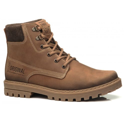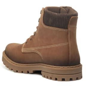 Cabedal em couro. Palmilha em EVA macio. Solado antiderrapante e de alta flexibilidade. Ajuste em cadarço.