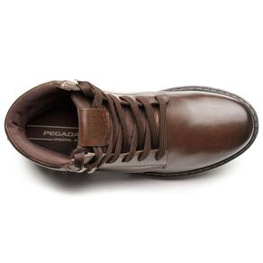 Cabedal confeccinado em couro. Palmilha em EVA macio. Solado antiderrapante e de alta flexibilidade. Ajuste em cadarço.