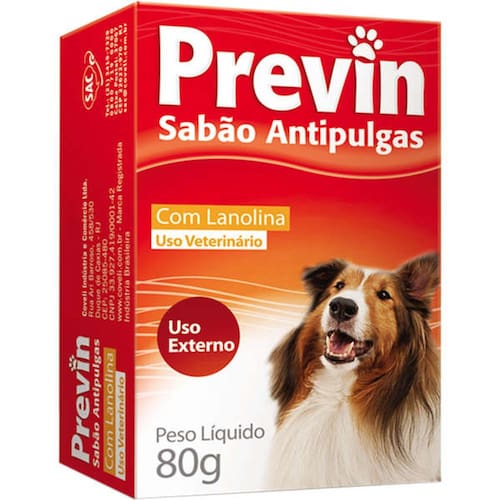 Sabão Antipulgas Para Cães Coveli Previn 80 g- Indicado para cães de todas as raças, à partir do 60º dia de vida;- Benefícios: combate a pulgas e carrapatos;- Deixa os pelos saudáveis e bonitos;- Com lanolina;- Não usar em gatos e animais com hipersensibilidade ao metriphonatoe;