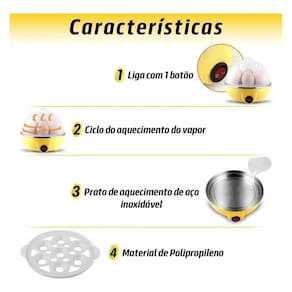 O cozedor de ovos portátil 110v é ideal para quem mantém uma vida corrida e gosta de otimizar tempo e manter uma alimentação saudável. Prático, basta acrescentar um pouco de água e você poderá cozinhar até 7 ovos em poucos minutos. Acompanha copo dosador de água que permite que você faça vários pontos de cozimento dependendo da quantidade de água.