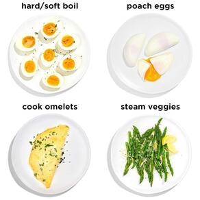 Ferva, cozinhe ou cozinhe no vapor facilmente até 6 ovos em minutos, mais rápido do que o método do fogão. Use o copo medidor incluído para saber quanta água você precisa, dependendo do estilo do ovo. A campainha soará quando seus ovos terminarem de cozinhar. PRONTO PARA O PEQUENO ALMOÇO Não há necessidade de esperar que os ovos cozidos esfriem para movê los após o cozimento. Com a ferramenta de levantamento de bandeja, você pode tomar seu brunch com ovos quentes recém cozidos. Quer goste de ovos cozidos ou moles, mexidos, omeletes ou escalfados, o pequeno almoço nunca foi tão fácil COMPACTO E FÁCIL DE LIMPAR A tampa, as bandejas para cozinhar e escaldar sem BPA podem ser lavadas na máquina de lavar louça para facilitar a limpeza. Chega de brigas para saber de quem é a vez de lavar os pratos, graças a esta versátil e conveniente máquina de fazer ovos. O tamanho compacto é perfeito para qualquer cozinha, dormitório de faculdade, viagens e muito mais NÃO APENAS PARA OVOS Você não só pode cozinhar ovos com perfeição ou criar tenros ovos escalfados, mas também pode cozinhar no vapor uma variedade de vegetais, tornando esta ferramenta de cozinha ainda mais versátil para café da manhã, almoço, jantar e lanche . O presente de Natal perfeito para qualquer pessoa da sua lista Marca: Não Informado