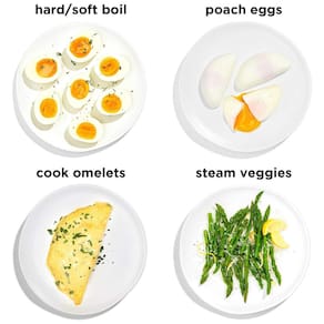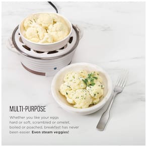 NÃO MAIS GUESSWORK Ferva, cozinhe ou cozinhe no vapor facilmente até 12 ovos em minutos, mais rápido do que o método do fogão. Use o copo medidor incluído para saber quanta água você precisa, dependendo do estilo do ovo. A campainha soará quando seus ovos terminarem de cozinhar. PRONTO PARA O PEQUENO ALMOÇO Não há necessidade de esperar que os ovos cozidos esfriem para movê los após o cozimento. Com a ferramenta de levantamento de bandeja, você pode tomar seu brunch com ovos quentes recém cozidos. Quer goste de ovos cozidos ou moles, mexidos, omeletes ou escalfados, o pequeno almoço nunca foi tão fácil COMPACTO E FÁCIL DE LIMPAR A tampa, as bandejas para cozinhar e escaldar sem BPA podem ser lavadas na máquina de lavar louça para facilitar a limpeza. Chega de brigas para saber de quem é a vez de lavar os pratos, graças a esta versátil e conveniente máquina de fazer ovos. O tamanho compacto é perfeito para qualquer cozinha, dormitório de faculdade, viagens e muito mais NÃO APENAS PARA OVOS Você não só pode cozinhar ovos com perfeição ou criar tenros ovos escalfados, mas também pode cozinhar no vapor uma variedade de vegetais, tornando esta ferramenta de cozinha ainda mais versátil para café da manhã, almoço, jantar e lanche. RECURSOS CETL aprovado com tecnologia de segurança avançada para longa durabilidade Marca: Não Informado