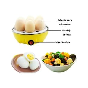 - cozinha até 7 ovos - gema mole, macia ou dura; - também faz omelete, salsicha, legumes e tudo a vapor; - é perfeito para refeições rápidas e gostosas. - projetado para cozinhar até 7 ovos ao mesmo tempo de maneira eficiente e com qualidade, inclusive podendo escolher o ponto desejado do ovo, que vai de acordo com a quantidade de água colocada no reservatório mole, macio, bem cozido . Diferente de fazer na panela, o ovo não ficará trepidando com o calor da água e não rachará ao longo do cozimento. A luz do cozedor desliga sozinha quando a água acaba, informando que o ovo já está cozido da forma desejada.