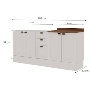 A Cozinha modulada 2 peças possui 0,91cm de Altura, 200 cm de Largura e 51 cm de Profundidade. Projetada para proporcionar praticidade e funcionalidade ao uso.