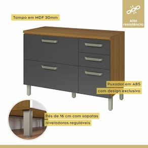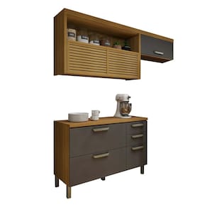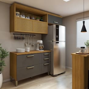 Transforme sua cozinha em um espaço de elegância e funcionalidade com nossas cozinhas moduladas em MDF. Combinando durabilidade e beleza, nossos móveis oferecem versatilidade para se adaptar ao seu estilo de vida. A qualidade do MDF garante resistência e fácil manutenção, enquanto o design modular permite a personalização do layout conforme suas necessidades. Torne sua cozinha o coração da casa, onde cada detalhe reflete sua personalidade única. Acabamento da Prateleira: Impressão Escala de Brilho da Prateleira: Fosco Acabamento da Gaveta: Impressão Escala de Brilho da Gaveta: Fosco Material do Puxador da Gaveta: ABS Acabamento da Porta: Impressão Escala de Brilho da Porta: Fosco Material do Puxador da Porta: ABS Acabamento dos Pés: Pintura Acompanha Tampo: Sim Altura dos Pés: 13 cm Ambiente Principal: Cozinha Complexidade da Montagem: Alta: deve ser montado por um montador especializado Cor: Freijó/Grafite Cor do Produto: Freijó/Grafite Escala de Brilho: Fosco Gaveta com Chave: Não Itens Inclusos: 1 Cozinha e manual de montagem. Linha ou Coleção: Princesa Manual de Montagem e Instalação: https://product-hub-prd.madeiramadeira.com.br/912248/documents/af5500a0-1940-40a6-b2be-e338eb6dc154201053373217174372745158.pdf Material da Dobradiça/Corrediça da Porta: Metálica Material da Gaveta: MDF Material da Porta: MDF Material da Prateleira: MDF Material do Tampo: MDF Material dos Pés: Polipropileno Medida de cada item (A x L x P): Armário Aéreo: 76,4cmx200cmx32cm Balcão: 86cmx120cmx52cm modular: Sim Montagem Flex: Não Necessita Montagem: Sim O Balcão Acompanha Pia: Não Origem do Produto: Nacional Pés Reguláveis: Sim Peso: 89,2 kg Peso Máximo por Gaveta: 5 kg Peso Máximo por Prateleira: 10 kg Possui Pés: 05 Possui Portas: Sim Possui Prateleiras: Sim Possui recorte para Cooktop: Não Possui Rodízio: Não Possui Vidro: Não Recomendações de Uso, Manutenção e Limpeza: Utilizar pano macio levemente umedecido e na sequencia pano macio seco. Sapatas Niveladoras: Sim Sistema de Montagem: Parafusos Tipo de Corrediça da Gaveta: Telescópica Tipo de Dobradiça da Porta: 35 mm Tipo de Puxador da Gaveta: Externo Tipo de Puxador da Porta: Externo