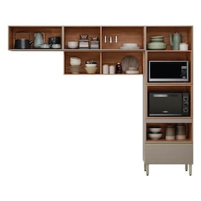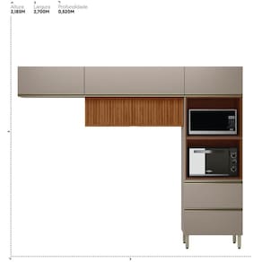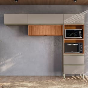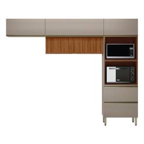 Cozinha 270cm Aéreo Ripado 3 Peças Proença Nogueira/Nude Prime - Bege