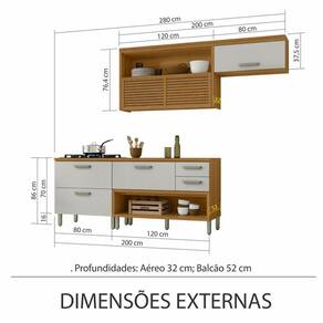 Cozinha 3 Peças Ripado Princesa 100 MDF Nesher - Off White