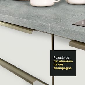 Além disso, o balcão acompanha tampo, que pode ser removido para instalação de pia com espaço de 105 x 44 cm.