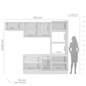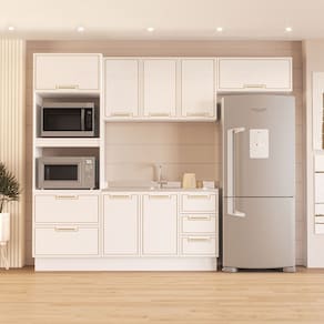 Modular : Sim Peso (kg) : 119.42 Garantia : 06 Meses Altura (cm) : 224.5 Acabamento : Pintura UV Largura (cm) : 270 Possui Pés : Rodapé Possui Vidro : Não Possui Portas : Sim Tipo de Porta : Misto (Bater e Basculante) Altura dos Pés : 15 Pés Reguláveis : Sim Possui Gavetas : Sim Possui Rodízio : Não Suporta Até (kg) : 30 Acompanha Tampo : Não Profundidade (cm) : 52 Escala de Brilho : Semi-Fosco Gaveta com Chave : Não Material dos Pés : Plástico Serviço Montagem : 114259443 Material da Porta : MDF/MDP Origem do Produto : Nacional Acabamento dos Pés : Pintura Ambiente Principal : Cozinha Balcão Suporta Pia : Sim Material da Gaveta : MDF/MDP Material Principal : MDF/MDP Possui Prateleiras : Sim Acabamento da Porta : Finish Foil Quantidade de Peças : 4 Sapatas Niveladoras : Sim Acabamento da Gaveta : Finish Foil Balcão Acompanha Pia : Não Quantidade de Portas : 6 Portas Material da Prateleira : MDF/MDP Peso Máximo por Gaveta : 5 Acabamento da Prateleira : Finish Foil Tipo de Puxador da Porta : Externo Escala de Brilho da Porta : Semi-Fosco Tipo de Puxador da Gaveta : Externo Escala de Brilho da Gaveta : Semi-Fosco Peso Máximo por Prateleira : 3 Tipo de Armário de Cozinha : Cozinha Compacta Possui Recorte para Cooktop : Não Tipo de Corrediça da Gaveta : Metálica Telescópica Material do Puxador da Porta : Alumínio Material do Puxador da Gaveta : Alumínio Escala de Brilho da Prateleira : Semi-Fosco Medida de Cada Item (A x L x P) (novo) : Balcão: 120x81x50,5; Aéreo 120x60x30,5; Basculante 80x35x30,5; Torre Quente 224,5x70x52 Material da Dobradiça/Corrediça da Porta : Alumínio Marca : Politorno Cor Interna : Branco Cor : Branco Cor do Produto : Branco Itens Inclusos : 1 Cozinha desmontada, kit de ferragens, manual de montagem e termo de garantia Cor Predominante : Branco Linha ou Coleção : Amara Quantidade de Prateleiras : 03 Prateleiras Quantidade de Gavetas : 04 Gavetas Quantidade do Produto : 4
