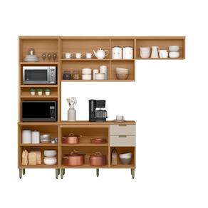 A Cozinha Selene, composta por 4 modulos, combina perfeitamente design moderno e funcionalidade. 100 MDF, garante durabilidade e um acabamento de qualidade superior. Conta com dobradicas com sistema de amortecimento e elegantes puxadores dourados de sobrepor, que acrescentam um toque sofisticado ao visual. O conjunto inclui uma torre com nichos, oferecendo praticidade e organizacao. Uma excelente escolha para quem busca uma cozinha funcional, charmosa e bem planejada.