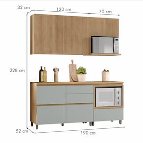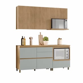 Os armários aéreos foram projetados com porta canelada, tendencia de Milão - Itália, que propõe sofisticação, aconchego, grande beleza e harmonia ao conjunto. Acabamento da Prateleira: Impressão Escala de Brilho da Prateleira: Semi-Brilho Acabamento da Gaveta: Impressão Escala de Brilho da Gaveta: Semi-Brilho Material do Puxador da Gaveta: Alumínio Acabamento da Porta: Impressão Escala de Brilho da Porta: Semi-Brilho Acabamento dos Pés: Pintura Acompanha Tampo: Sim Altura dos Pés: 10 cm Ambiente Principal: Cozinha codigo_ean: 7909903407516 Complexidade da Montagem: Alta: deve ser montado por um montador especializado Cor: Marrom/Verde Cor do Produto: Marrom/Verde Escala de Brilho: Semi-Brilho Gaveta com Chave: Não Itens Inclusos: Cozinha 4 peças, Kit de Ferragens e Manual de Montagem Linha ou Coleção: Rainha Manual de Montagem e Instalação: https://product-hub-prd.madeiramadeira.com.br/867672/documents/a1ef1a09-2451-4347-b830-21528c861350asrainha500816500817500818.pdf Material da Dobradiça/Corrediça da Porta: Aço Material da Gaveta: MDF Material da Porta: MDF Material da Prateleira: MDF Material do Tampo: MDF Material dos Pés: Plástico Medida de cada item (A x L x P): Armário Aéreo 2 Portas: 80cmx120cmx32cm Armario Aéreo Microondas: 80cmx70cmx42cm, Balcão 1 Porta Báscula 4 Gavetas: 91cmx120cmx52cm, Balcão Forno: 91cmx70cmx52cm modular: Sim Necessita Montagem: Sim O Balcão Acompanha Pia: Não Origem do Produto: Nacional Pés Reguláveis: Sim Peso: 134,14 kg Peso Máximo por Gaveta: 5 kg Peso Máximo por Prateleira: 10 kg Possui Pés: 09 Possui Portas: Sim Possui Prateleiras: Sim Possui recorte para Cooktop: Não Possui Rodízio: Não Possui Vidro: Não Produto Montado: Sim Recomendações de Uso, Manutenção e Limpeza: Utilizar pano macio levemente umedecido e na sequencia pano macio seco. Sapatas Niveladoras: Sim Sistema de Montagem: Parafusos e cavilhas Tipo de Corrediça da Gaveta: Metálica Telescópica Tipo de Dobradiça da Porta: 35 mm Tipo de Puxador da Gaveta: Externo Tipo de Puxador da Porta: Embutido Ean: 7909903407516