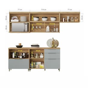 A linha de cozinha Nesher Marquesa 100% MDF e com certificação FSC(R), tem design contemporâneo, robusto e é muito pratica. Inspirada em cozinhas planejadas, está disponível em módulos, permitindo composições variadas, projetos exclusivos, conforme o espaço e o gosto do consumidor. Acabamento da Prateleira: Impressão Escala de Brilho da Prateleira: Semi-Brilho Acabamento da Gaveta: Impressão Escala de Brilho da Gaveta: Semi-Brilho Material do Puxador da Gaveta: Alumínio Acabamento da Porta: Impressão Escala de Brilho da Porta: Semi-Brilho Material do Puxador da Porta: Alumínio Acabamento dos Pés: Pintura Acompanha Tampo: Sim Altura dos Pés: 10 cm Altura Máxima dos Pés: 10.0000 Ambiente Principal: Cozinha codigo_ean: 7909903304297 Complexidade da Montagem: Alta: deve ser montado por um montador especializado Cor: Marrom/Verde Cor do Produto: Marrom/Verde Escala de Brilho: Semi-Brilho Gaveta com Chave: Não Itens Inclusos: Cozinha 5 peças, Manual de Montagem e Kit Ferragens Linha ou Coleção: Marquesa - Nesher Manual de Montagem e Instalação: https://product-hub-prd.madeiramadeira.com.br/848783/documents/cd2a6e6c-c1b4-46d3-a2bc-c23950a13e9etagemcozinha5peCasmarquesa.pdf Material da Dobradiça/Corrediça da Porta: Metálica Material da Gaveta: MDF Material da Porta: MDF Material da Prateleira: MDF Material do Tampo: MDF Material dos Pés: Plástico Medida de cada item (A x L x P): Armario Aereo mic 1 Porta Bascula: 82cmx80cmx42cmArmario Aereo 1 Porta Bascula: 82cmx120cmx32cmArmario Aereo geladeira 1 Porta Bascula: 39,5cmx80cmx32cmBalcão 1 Porta Bascula 1 Gaveta: 91cmx80cmx52cmBalcão 1 Porta 3 Gavetas : 91cmx120cmx52cm Necessita Montagem: Sim O Balcão Acompanha Pia: Não Origem do Produto: Nacional Pés Reguláveis: Sim Peso: 155,328 kg Peso Máximo por Gaveta: 5 kg Peso Máximo por Prateleira: 10 kg Possui recorte para Cooktop: Não Possui Rodízio: Não Produto Montado: Sim Recomendações de Uso, Manutenção e Limpeza: Utilizar pano macio levemente umedecido e na sequencia pano macio seco. Sapatas Niveladoras: Sim Sistema de Montagem: Parafusos e cavilhas Tipo de Corrediça da Gaveta: Metálica Telescópica Tipo de Dobradiça da Porta: 35 mm Tipo de Puxador da Gaveta: Externo Tipo de Puxador da Porta: Externo