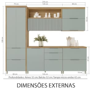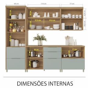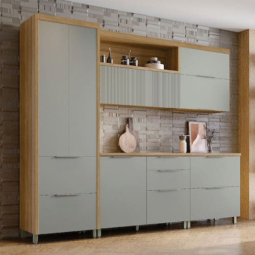 Cozinha 5 Peças 7 Portas 6 Gavetas Ripado Marquesa 100 MDF - Verde