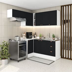 Cozinha Pérola Completa: o equilíbrio ideal entre design e funcionalidade para valorizar o seu lar! Acabamento da Prateleira: Pintura Escala de Brilho da Prateleira: Semi-Brilho Acabamento da Gaveta: Pintura Escala de Brilho da Gaveta: Semi-Brilho Material do Puxador da Gaveta: Plástico Acabamento da Porta: Pintura Escala de Brilho da Porta: Semi-Brilho Material do Puxador da Porta: Plástico Acompanha Tampo: Sim Ambiente Principal: Cozinha Balcão Suporta Pia: Sim codigo_ean: 7899885096474 Complexidade da Montagem: Alta: deve ser montado por um montador especializado Cor: Preto/Branco Cor do Produto: Preto/Branco Cor Interna: Branco Escala de Brilho: Semi-Brilho Gaveta com Chave: Não Itens Inclusos: 1 Cozinha Completa, Kit Ferragens, Manual de Montagem e Termo de Garantia Linha ou Coleção: Pérola Manual de Montagem e Instalação: https://product-hub-prd.madeiramadeira.com.br/701120292/documents/784e4e75-593c-47ed-b1bf-e4a86bf4b4633156103622417558890430893.pdf Marca: Yescasa Material da Corrediça: Alumínio Material da Dobradiça/Corrediça da Porta: Alumínio Material da Gaveta: MDF/MDP Material da Porta: MDF/MDP Material da Prateleira: MDF/MDP Material do Tampo: MDF/MDP Material dos Pés: MDF Medida de cada item (A x L x P): Balcão (84cm x 120cm x 50,5cm); Aéreo 3 Portas (67cm x 120cm x 36,5 cm); Basculante ( 33,5cm x 80cm x 36,5cm); Aéreo Canto (67cm x 90+52cm x 35cm); Balcão Canto ( 94cm x 90+52cm x 52cm) modular: Sim Necessita Montagem: Sim O Balcão Acompanha Pia: Não Origem do Produto: Nacional Pés Reguláveis: Não Peso: 115,67 kg Peso Máximo por Gaveta: 5 kg Peso Máximo por Prateleira: 5 kg Possui Pés: Rodapé Possui Portas: Sim Possui Prateleiras: Sim Possui recorte para Cooktop: Não Possui Rodízio: Não Produto Montado: Sim Recomendações de Uso, Manutenção e Limpeza: Utilize um pano macio umedecido com água e sabão neutro, seguido de pano seco. Não utilize produtos químicos ou abrasivos para limpeza, pois estes danificam o revestimento do móvel. Sapatas Niveladoras: Não Sistema de Montagem: Cavilha, Parafuso, Minifix e prego. Acompanha bucha e parafuso para fixação na parede Tipo de Corrediça da Gaveta: Simples Tipo de Dobradiça da Porta: Soft close Tipo de Dobradiça/Corrediça da Porta: Soft Close Tipo de Puxador da Gaveta: Externo Tipo de Puxador da Porta: Externo