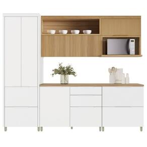 Cozinha 5 Peças Marquesa 6 Portas 6 Gavetas 100% Mdf Nesher Branca / Nature A linha de cozinha Nesher Marquesa 100 MDF e com certificacao FSC(R), tem design contemporaneo, robusto e e muito pratica. Inspirada em cozinhas planejadas, esta disponivel em modulos, permitindo composicoes variadas, projetos exclusivos, conforme o espaco e o gosto do consumidor.