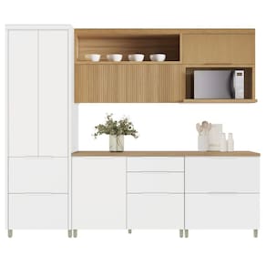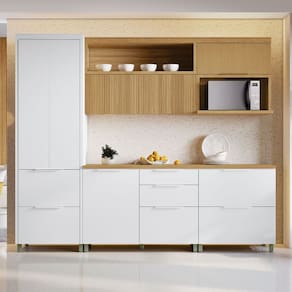 A linha de cozinha Nesher Marquesa 100% MDF e com certificação FSC(R), tem design contemporâneo, robusto e é muito pratica.