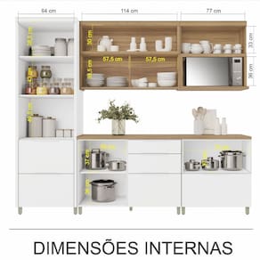 Outro grande diferencial é o balcão com maior altura útil do mercado, proporcionando maior espaço para guarda de utensílios e mantimentos e ainda com pés menores 10cm (mais regulagem de 2,5cm). O pé de 10 cm, deixa o conjunto com maior robustez, proporcionalidade e beleza.