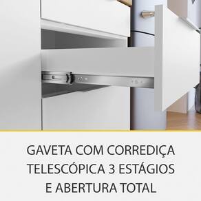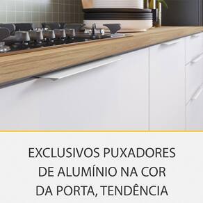 Diferenciais unicos: Modernas portas com abertura basculante e pistao a gas,. Dobradicas com freio anti-impacto slow motion, conforto e garantia de durabilidade. Modernos puxadores de aluminio, tendencia, sofisticacao, durabilidade e beleza. Corredica Telescopica Abertura Integral: Robusta e com tres estagios, esta corredica e ideal para o uso diario, facilitando o acesso aos utensilios. Ergonomico gavetao com laterais e traseiro altos para armazenagem com seguranca de utensilios e mantimentos. Gaveta porta condimentos e Gaveta com organizador de talheres, conforto e praticidade no uso diario.