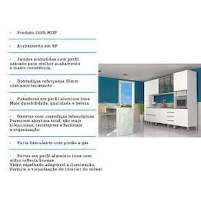 Cozinha Compacta Modulada 6 Peças Sem Tampo De 120 Branco Vidro Reflecta Pérola Luciane Móveis Branco Polar Com Concreto
