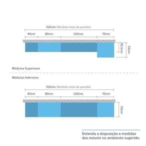 Composta por 6 peças cuidadosamente pensadas para sua organização. Conta com acessórios requintados como puxadores tipo gola, corrediças metálicas telescópicas para abertura total das gavetas e pés em Poliestireno. Os módulos são montados individualmente e permitem a instalação da forma que melhor se adeque ao seu espaço.