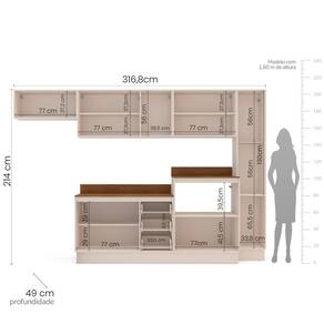 Medida de cada item (A x L x P): Balcão 81cm x 120cm x 49 cm; Aéreo 59cm x 120 cm x 29 cm; Basculante 35,7cm x 80 cm x 29xm; Aéreo 59cm x 80cm x 29cm; Paneleiro 214 cm x 36,8cm x 49cm; Balcão Alto 115,5cm x 80cm x 49cm