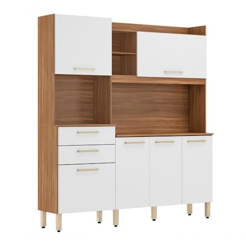 Cozinha Compacta Selecta, com distribuição pensada para se ter o máximo de aproveitamento interno, estrutura em MDP de 15mm e 12mm, acabamento em pintura UV. Equipada com 06 portas largas articuladas com dobradiças metálicas, sendo uma porta superior com pistão a gás, 02 gavetas com corrediças metálicas, puxadores e pés na cor champanhe, conta com espaço para forno ou microondas, possui nichos externos, a parte interna conta com prateleiras e compartimentos muito bem divididos para você guardar alimentos, panelas, eletroportáteis, louças entre outros utensílios de forma organizada, tampo superior rebaixado garantindo mais espaço para organizar de forma decorativa, o visual moderno oferece sofisticação e bom gosto para a decoração da sua cozinha, acompanha pés com regulagem de altura e um kit de ferragens de qualidade garantindo durabilidade e resistência ao móvel. Este móvel chegará em sua casa separado em 02 volumes.