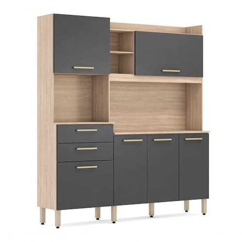 Cozinha Compacta Selecta, com distribuição pensada para se ter o máximo de aproveitamento interno, estrutura em MDP de 15mm e 12mm, acabamento em pintura UV. Equipada com 06 portas largas articuladas com dobradiças metálicas, sendo uma porta superior com pistão a gás, 02 gavetas com corrediças metálicas, puxadores e pés na cor champanhe, conta com espaço para forno ou microondas, possui nichos externos, a parte interna conta com prateleiras e compartimentos muito bem divididos para você guardar alimentos, panelas, eletroportáteis, louças entre outros utensílios de forma organizada, tampo superior rebaixado garantindo mais espaço para organizar de forma decorativa, o visual moderno oferece sofisticação e bom gosto para a decoração da sua cozinha, acompanha pés com regulagem de altura e um kit de ferragens de qualidade garantindo durabilidade e resistência ao móvel. Este móvel chegará em sua casa separado em 02 volumes.