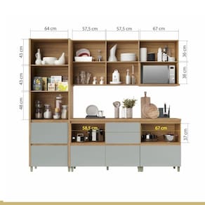 A linha de cozinha Nesher Rainha 100% MDF e com certificação FSC(R), tem design contemporâneo, robusto e é muito pratica. Inspirada em cozinhas planejadas, está disponível em módulos, permitindo composições variadas, projetos exclusivos, conforme o espaço e o gosto do consumidor. Os armários aéreos foram projetados com porta canelada, tendencia de Milão - Itália, que propõe sofisticação, aconchego, grande beleza e harmonia ao conjunto. Acabamento da Prateleira: Impressão Escala de Brilho da Prateleira: Semi-Brilho Acabamento da Gaveta: Impressão Escala de Brilho da Gaveta: Semi-Brilho Material do Puxador da Gaveta: Alumínio Acabamento da Porta: Impressão Escala de Brilho da Porta: Semi-Brilho Material do Puxador da Porta: Alumínio Acabamento dos Pés: Pintura Acompanha Tampo: Sim Altura dos Pés: 10 Altura Máxima dos Pés: 10.0000 Ambiente Principal: Cozinha codigo_ean: 7909903304266 Complexidade da Montagem: Alta: deve ser montado por um montador especializado Cor: Marrom/Verde Cor do Produto: Marrom/Verde Escala de Brilho: Semi-Brilho Gaveta com Chave: Não Informações Complementares: Medidas da ilha (AxLxP): 100cm x 200cm x 84,5cm Itens Inclusos: Cozinha 8 peças, Manual de Montagem e Kit Ferragens Linha ou Coleção: Rainha Manual de Montagem e Instalação: https://product-hub-prd.madeiramadeira.com.br/848778/documents/a9887a2f-5817-4443-bbad-f4e8b8f10c80cozinha8peCasrainhagoumert.pdf Material da Dobradiça/Corrediça da Porta: Metálica Material da Gaveta: MDF Material da Porta: MDF Material da Prateleira: MDF Material do Tampo: MDF Material dos Pés: Plástico Medida de cada item (A x L x P): Paneleiro 2 Portas 2 Gavetas: 22,8cmx70cmx52cmArmario Aereo 2 Portas: 80cmx80cmx32cmArmario Aereo mic 1 Porta Bascula: 80cmx70cmx42cmBalcão 1 Porta Bascula 4 Gavetas: 91cmx120cmx52cmBalcão 1 Porta Bascula 1 gv: 91cmx80cmx52cmPainel Ilha: 100cmx200cmx35,5Balcão 1 Porta Bascula 4 Gavetas: 91cmx120cmx52cmBalcão 1 Porta Bascula 1 gv: 91cmx80cmx52cm Necessita Montagem: Sim O Balcão Acompanha Pia: Não Origem do Produto: Nacional Pés Reguláveis: Sim Peso: 371.5968 Peso Máximo por Gaveta: 5 Peso Máximo por Prateleira: 10 Possui Pés: 22 Possui Rodízio: Não Produto Montado: Sim Recomendações de Uso, Manutenção e Limpeza: Utilizar pano macio levemente umedecido e na sequencia pano macio seco. Sapatas Niveladoras: Sim Sistema de Montagem: Parafusos e cavilhas Tipo de Corrediça da Gaveta: Metálica Telescópica Tipo de Dobradiça da Porta: 35 mm Tipo de Puxador da Gaveta: Externo