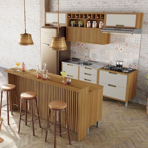 - Modernos puxadores embutidos em alumínio na cor champanhe, beleza, qualidade e durabilidade. Acabamento da Prateleira: Impressão Escala de Brilho da Prateleira: Fosco Acabamento da Gaveta: Impressão Escala de Brilho da Gaveta: Fosco Material do Puxador da Gaveta: Alumínio Acabamento da Porta: Impressão Escala de Brilho da Porta: Fosco Material do Puxador da Porta: Alumínio Acabamento dos Pés: Pintura Acompanha Tampo: Sim Altura dos Pés: 16 cm Ambiente Principal: Cozinha codigo_ean: 7909903387436 Complexidade da Montagem: Alta: deve ser montado por um montador especializado Cor: Freijó/Off-White Cor do Produto: Freijó/Off-White Escala de Brilho: Fosco Espessura do Tampo: 15 mm Gaveta com Chave: Não Itens Inclusos: 1 Cozinha Completa, 1 Kit Ferragens e 1 Manual de Montagem. Manual de Montagem e Instalação: https://product-hub-prd.madeiramadeira.com.br/864709/documents/d4950834-f3a3-4f18-8ef0-54e89a442f77peratriz8peCas500598500599.pdf Material da Dobradiça/Corrediça da Porta: Aço Material da Gaveta: MDF Material da Porta: MDF Material da Prateleira: MDF Material do Fundo: Chapa de Fibra Material do Tampo: MDF Material dos Pés: Polipropileno Medida de cada item (A x L x P): 2 Aereo geladeira: 34cm x 80cm x 32cm 1 Aereo 120cm: 78cm x 120cm x 32cm 2 Balcão 120cm: 86cm x 120cm x 52cm 2 Balcão 80cm: 86cm x 80cm x 52cm Ilha: 100cm x 200cm x 35,5cm modular: Sim Necessita Montagem: Sim O Balcão Acompanha Pia: Não Origem do Produto: Nacional Pés Reguláveis: Sim Peso: 252,6 kg Peso Máximo por Gaveta: 5 kg Peso Máximo por Prateleira: 15 kg Possui Pés: 17 Possui Portas: Sim Possui Prateleiras: Sim Possui recorte para Cooktop: Não Possui Rodízio: Não Possui Vidro: Não Produto Montado: Sim Recomendações de Uso, Manutenção e Limpeza: Utilizar pano macio levemente umedecido e na sequencia pano macio seco. Sapatas Niveladoras: Sim Sistema de Montagem: Parafusos, cavilhas e Minifix. Tipo de Corrediça da Gaveta: Metálica Telescópica Tipo de Dobradiça da Porta: 35 mm Tipo de Puxador da Gaveta: Externo Tipo de Puxador da Porta: Externo Ean: 7909903387436